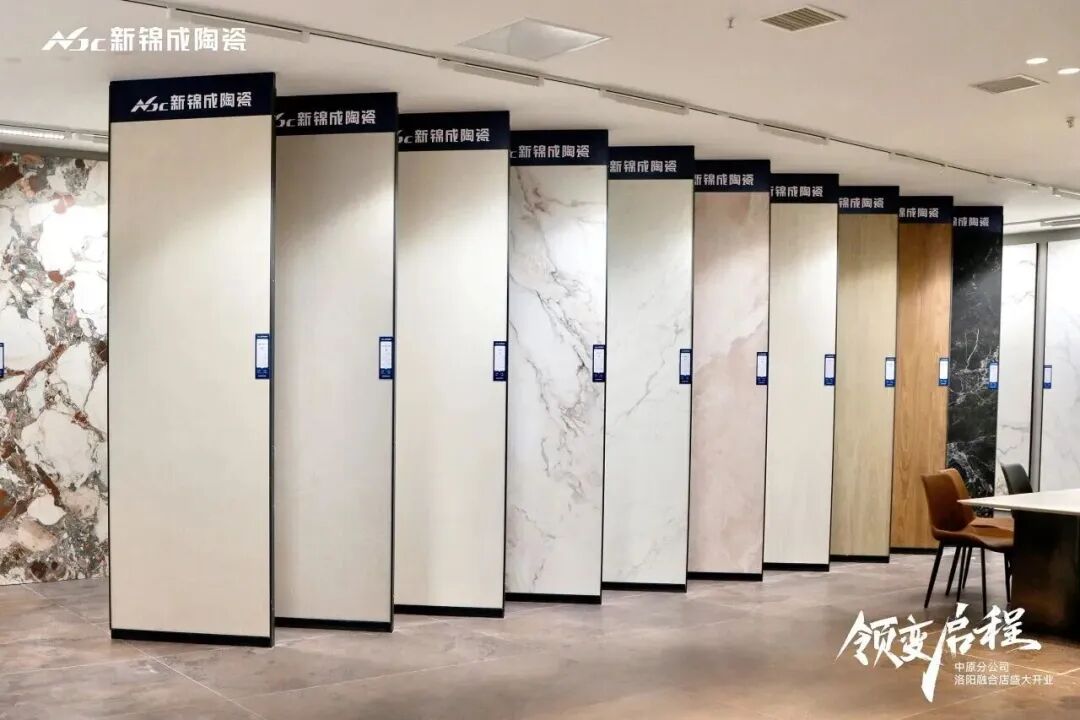 3月18日,新锦成陶瓷洛阳融合店(首店)正式开业。该店位于洛阳名优建材家居广场,面积达800㎡的高端选材空间,由陈飞杰香港设计事务所倾力打造,设计核心为“模块化基因、阵列仪式感、光影叙事”,外立面采用简约高级的设计语言。集结了品牌旗下新岩素岩板、兴辉瓷砖、利家福瓷砖三大核心系列产品,实现从高端岩板到主流规格瓷砖的全品类覆盖。门店精准服务于开发商、项目方、终端高净值业主以及中高端设计师三大核心客群,旨在成为“装企选品一站式平台”。