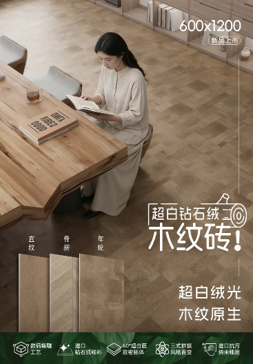 “木纹钻石绒的诞生,是我们踩准了消费趋势的脉搏。”圣凯罗瓷砖总经理颜慧萍坦言,“2026年木纹砖市场份额持续攀升,已成主流刚需,但传统木纹砖多是亮面或哑光,缺少柔光砖的护眼与高级感。钻石绒木纹系列刚好补上这个市场缺口,让用户不用在‘木纹的自然’和‘柔光的舒适’之间做取舍。”