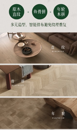 如果说性能升级是钻石绒的硬底气,那木纹纹理的创新融入,就是它领跑市场的软实力。长期以来,金丝绒柔光砖的设计被大理石纹、纯色垄断,很难适配当下大火的原木风、奶油风等自然系装修需求。