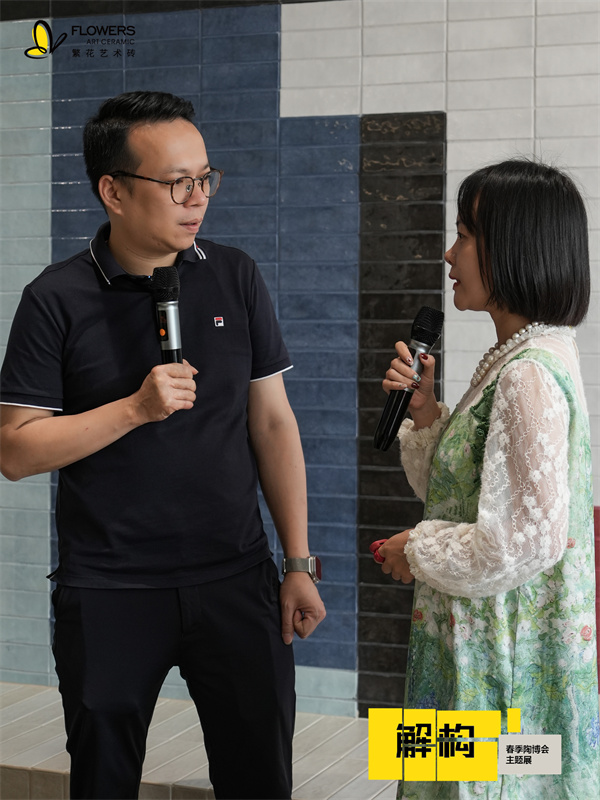 在媒体问答环节,焦总就陶博会战略转变、行业同质化破局、终端落地赋能、产品迭代逻辑等核心问题作出深度回应。本次“解·构”主题展不仅是一次展厅升级,更是一次品牌理念的系统输出——从产品输出向美学体系输出的战略升级,旨在回归材质与设计本质,向行业传递艺术砖应有的价值与质感厚度,为经销商与消费者提供可感知、可落地、可传播的完整美学方案。