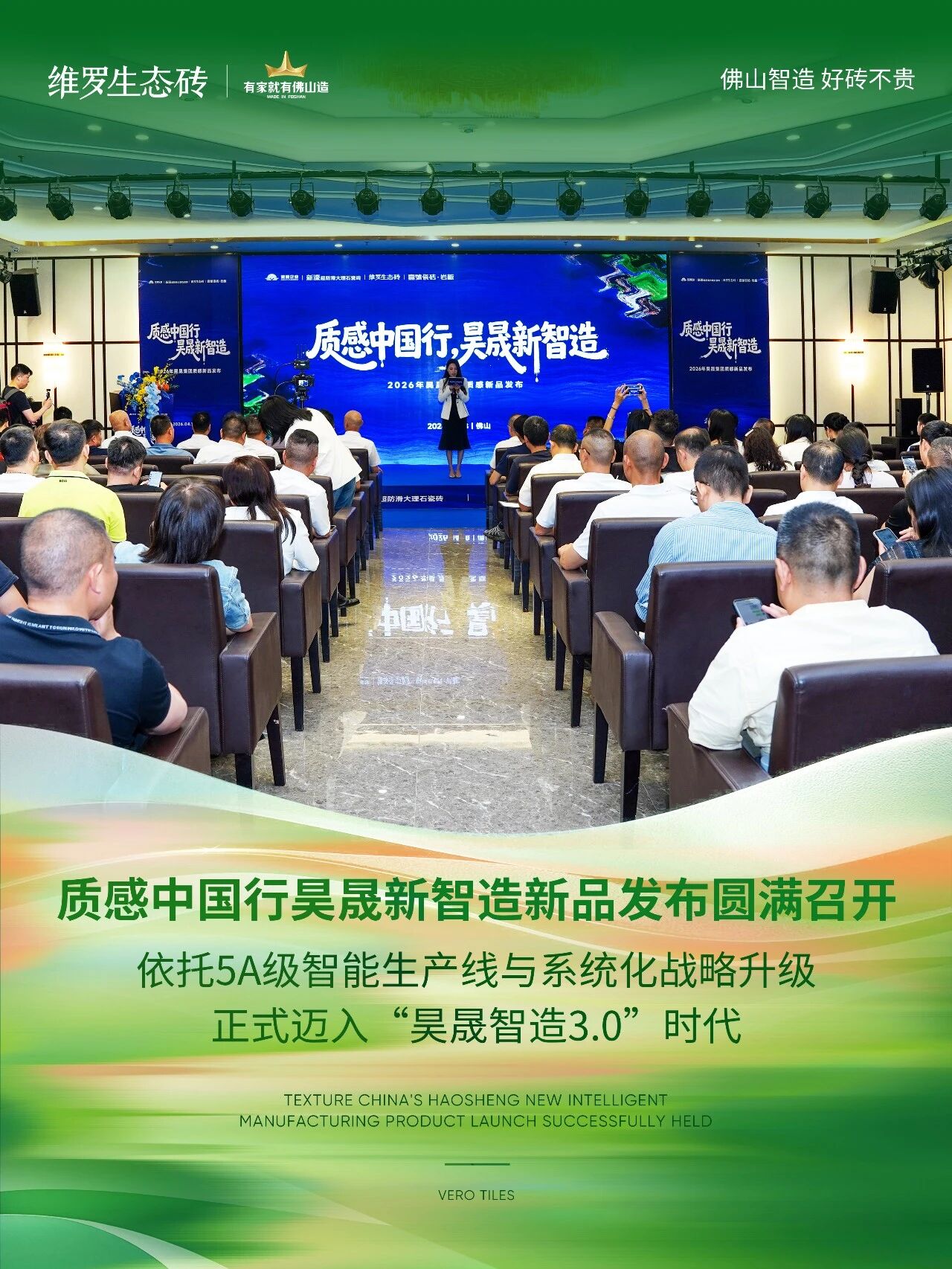 除了质感新品亮相,昊晟集团“亮面抛釉砖持久防滑关键技术研究及应用”项目获权威鉴定,总体技术达国际先进水平,其中刻蚀防滑技术更被认定为国际领先。这印证了维罗生态砖对“健康人居”的坚实承诺,及其依托昊晟集团智造底蕴所构建的科技内核。