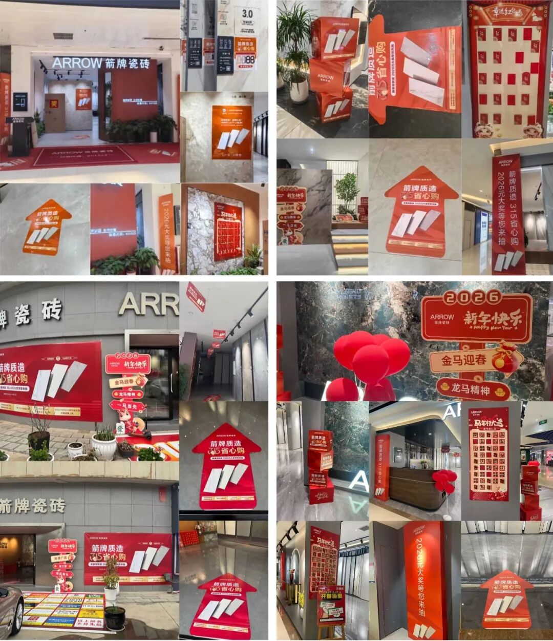 箭牌瓷砖作为 CCTV《大国品牌》战略合作品牌,在本次315大促活动中,以此为引领,通过丰富多元的宣传形式与多渠道传播布局,持续强化行业标杆形象,将品牌竞争力转化为门店的销售动能,为终端增长筑牢根基。