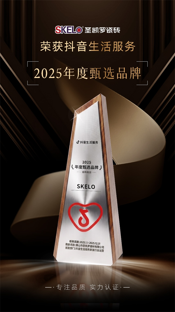 近日,抖音生活服务 2025 年度家居家电甄选品牌榜正式发布,凭借出众的品牌口碑、同城流量运营能力与终端市场表现,圣凯罗瓷砖成功跻身全国瓷砖品牌前十!成为佛山陶瓷品牌在抖音本地生活赛道的标杆代表。这份来自平台与市场的双重认可,既是对圣凯罗过往数字化布局的肯定,也为品牌 2026 年渠道战略升级拉开了序幕。