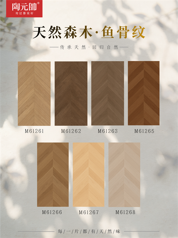 陶元帅天然森木 M61266鱼骨木纹砖,把森林深处的纯粹安宁、原木本真质感,一寸一寸铺进居家日常,让家时刻萦绕自然治愈氛围。