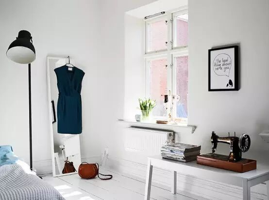 这套瑞典的公寓以白色和蓝色以及铜绿为主调,优秀的配色和材质选择,使得整个空间看起来很通畅而且高雅,老旧的饰品使得室内空间更具风格化。