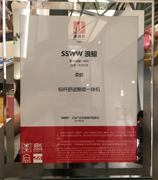 首届“沸腾杯”智能坐便器性能测评获奖产品颁奖仪式在上海厨卫展展位现场举行,浪鲸卫浴智能座便器斩获四项大奖。智能盖板(型号:ICO330)荣获"沸腾杯"标杆节能智能盖板、标杆舒适智能盖板;智能盖板(型号:ICO350)荣获"沸腾杯"标杆节能智能盖板;整体智能一体机(型号:ICO558)荣获"沸腾杯"标杆舒适智能一体机;整体智能一体机(型号:ICO568)荣获"沸腾杯"标杆舒适智能一体机、标杆节能智能一体机。